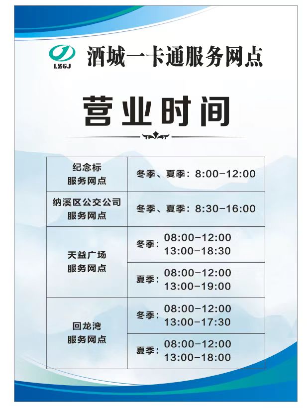 3.掛失、補卡:該卡在未開通互聯互通時遺失,用戶可憑本人身份證或戶口簿到本地任何公交酒城一卡通服務網點辦理掛失、補卡,需繳納新卡工本費,原卡剩余金額自動轉入新卡。開通互聯互通后,因存在異地消費,不能掛失、補卡。