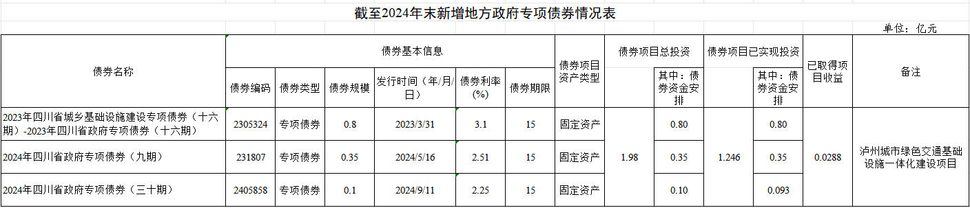 現將我司截至2024年末新增地方政府專項債券存續期信息公開如下:
